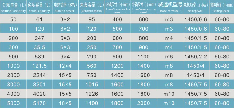 反应锅由锅体、锅盖、搅伴器、电加热油夹管、支承及传动装置、轴封装置、溢油槽等组成,并配有电加热棒及测温、测压表。