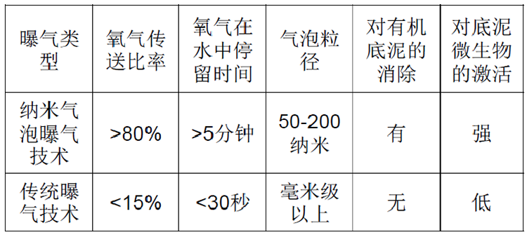 Comparison between nanobubbles patent technology and the traditional aeration technology |