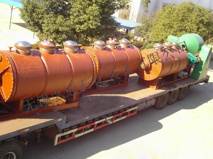 具有结构简单操作方便,使用周期长,性能稳定可靠,蒸汽耗晕小,适用性能强,产品质量好,特别适用于不耐高温、易燃、调温下易氧化的膏状物料的干燥,该机经用户长期使用证明是一良好的干燥设备。原理:被干燥物料从壳体上方正中间加入,在不断正反转动的耙齿的搅伴下,物料轴向来回走动,与壳体内壁接触的表面不断新,受到蒸汽的间接加热,耙齿的均匀搅拌,粉碎棒的粉碎,使物料表面水分有利的排出,气化的水分经干式除尘器、湿式除尘器、冷凝器,从真空泵出口处放空。